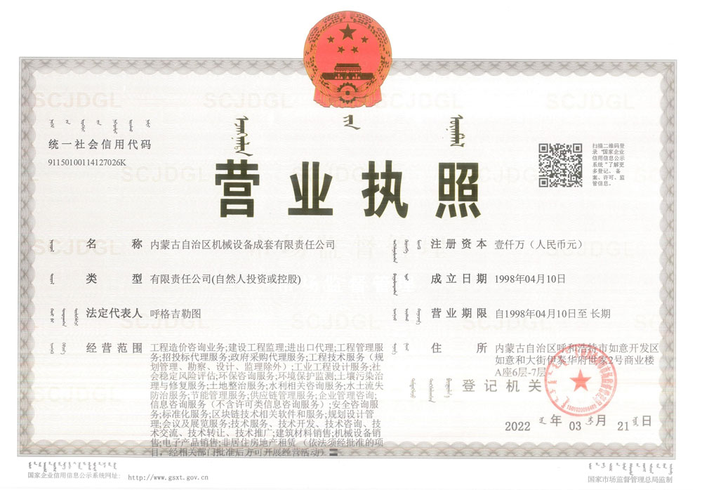 內蒙古自治區(qū)機械設備成套有限責任公司營業(yè)執(zhí)照